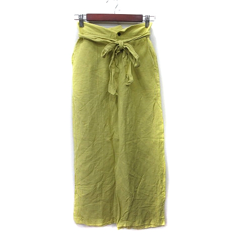 【中古】パリゴ PARIGOT ワイドパンツ ハイウエスト 麻 リネン 34 XS 黄色 イエロー /YI レディース