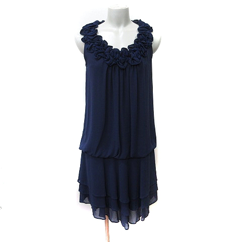 【中古】キスミス Xmiss ワンピース ひざ丈 ノースリーブ シフォン 39 紺 ネイビー /YI レディース