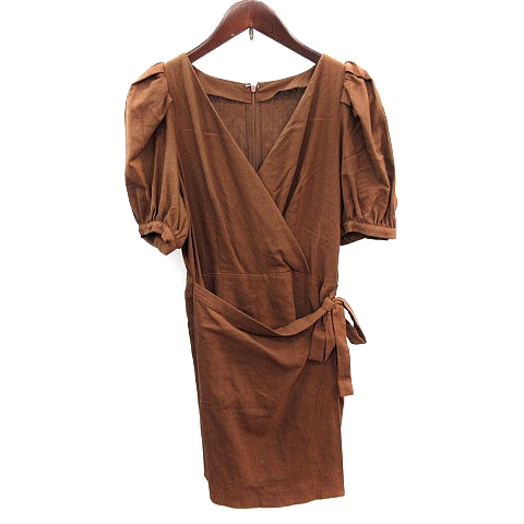 【中古】フリーズマート パンツ オールインワン ショート丈 カシュクール ラップ 麻混 リネン混 三分袖 F 茶