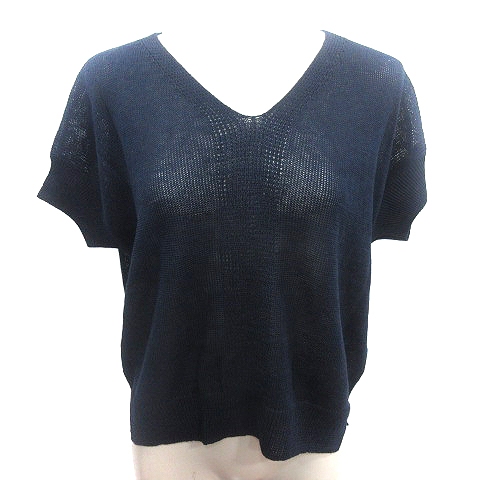 【中古】ラウンジドレス ガリャルダガランテ ニット カットソー Vネック 麻 リネン 半袖 F 紺 ネイビー レディース