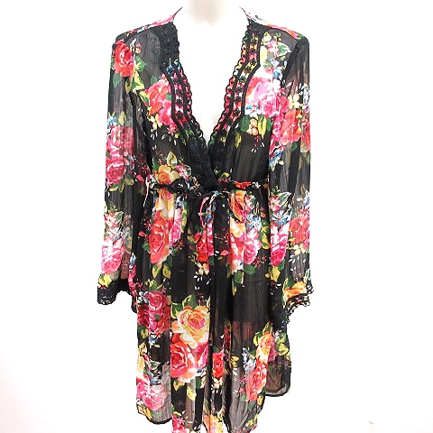 【中古】オットー OTTO ワンピース Aライン ひざ丈 長袖 花柄 黒 ブラック /RT レディース