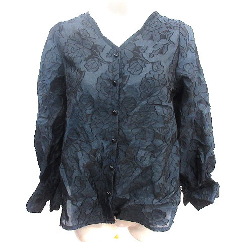 【中古】ナイスクラップ NICE CLAUP シェリーチュー cherie chuu シャツ ブラウス ノーカラー 2WAY 刺繍 花柄 長袖 紺