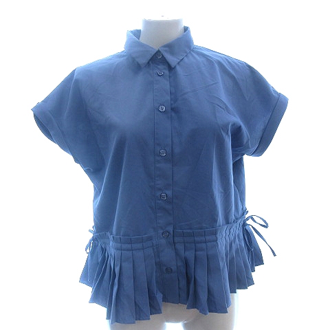 【中古】ビームスハート BEAMS HEART シャツ ブラウス ステンカラー ロールアップ ペプラム プリーツ リボン 半袖 青