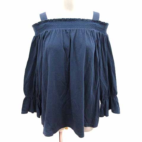 【中古】ジーユー GU ブラウス 2way オフショルダー 七分袖 L 紺 ネイビー /YK ●RY レディース
