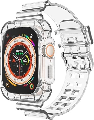 コンパチブル apple watch バンド アップルウォッチバンド スポーツバンド 一体型交換用ベルト 透明 クリア 耐衝撃ベルト iWatch Series 49mm 46mm 45mm 44mm 42mm 41mm 40mm 38mm 11/10/9/Ultra2/Ultra/8/7/6/5/4/3/2/1/SEに対応 TPU材質 全面保護ケース