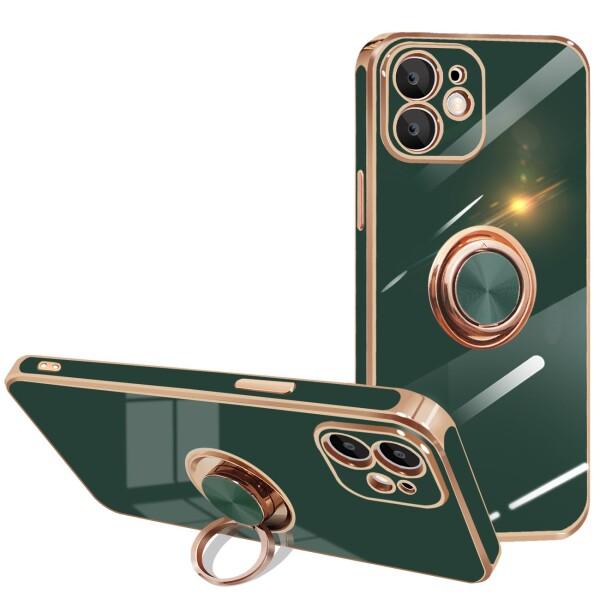 iPhone 12 ケース リング付き 車載ホルダー対応 携帯カバー 360°回転 スタンド機能 リング カバー アイフォン 12 耐衝撃 TPU カバー 6.1インチ用(グリーン)