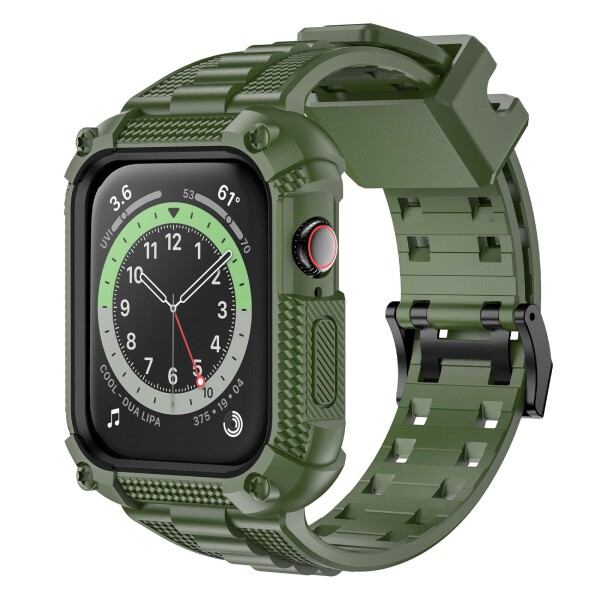 Wristitani Apple Watch バンド 44/45mm iWatch シリーズ 9/8/7/6/5/4/SE3/SE2/SEに対応 アップルウォッチ フルカバー 一体型 バンパーケース付き 耐衝撃 TPU 素材 スポーツ アウトドア専用,?ミリタリーグ