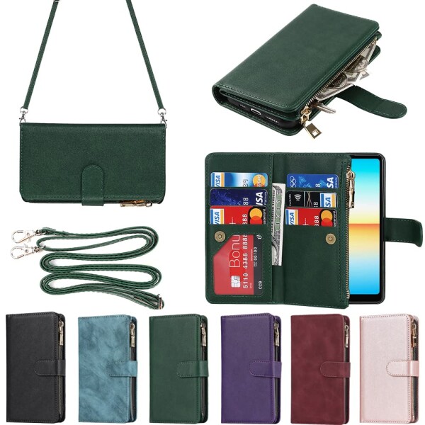 for Xperia ACE III SO-53C / SOG08 ケース ソニー for sony xperia aceiii so53c 縄掛けケース 手帳型 財布型 ICカード コインポケット ストラップ付き カード 収納 小銭入れ ファスナーポケット付き PUレザー 6色 グリーン