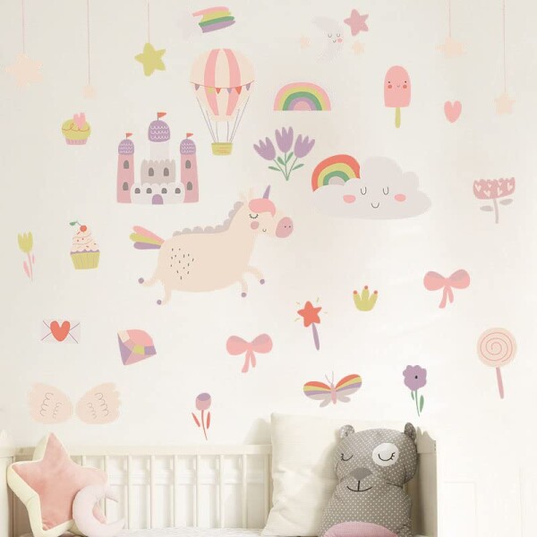 不二玩家 ウォールステッカー 花 ユニコーン 虹 星 雲 風船 子供部屋 木 植物