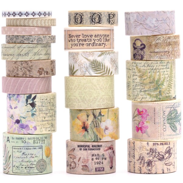 Songdao 20巻 レトロ マスキングテープ セット ノスタルジック創造性 ヴィンテージ 和紙テープ 女性のスタイル ワシテープ 包装、DIY工芸品 (野生の遺志)