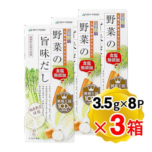 スカイフード 四季彩々 野菜の旨味だし 1箱(3.5g×8P入り)×3箱セット 顆粒タイプ 国産野菜5種使用 食塩無添加 動物性素材不使用 万能だし SKY FOOD