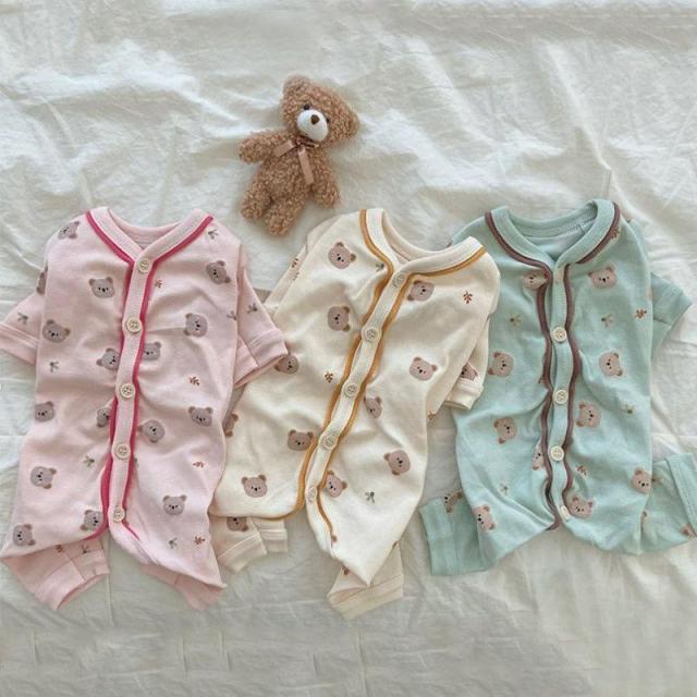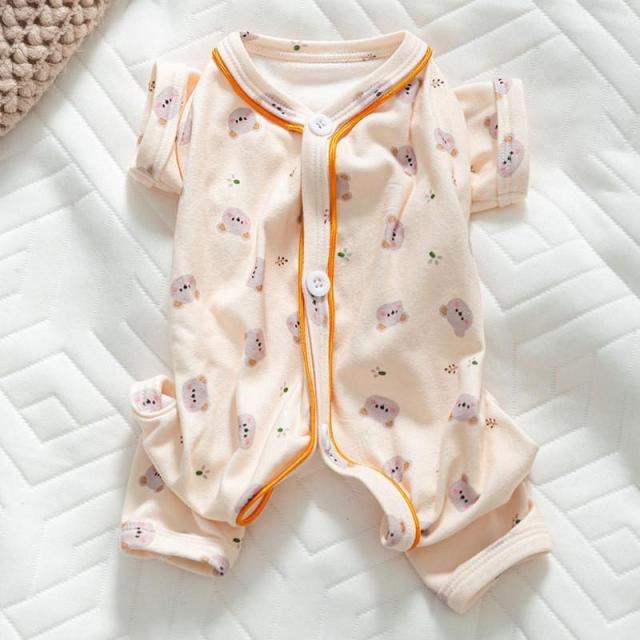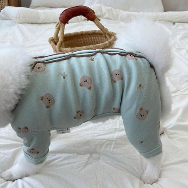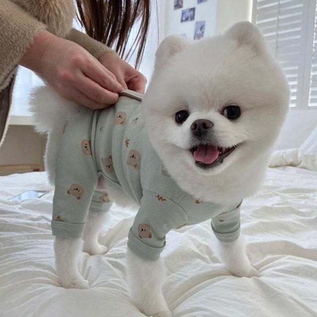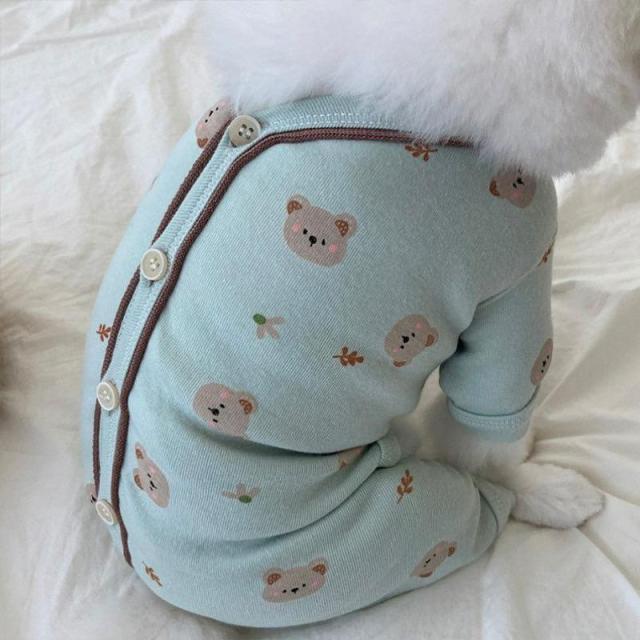 犬服 犬の服 ドッグウェア 秋 冬 洋服 ペット服 秋、冬使えるロンパース 長袖 パジャマ くま柄 可愛い 背中開き 着せやすい オシャレ ペット グッズ 犬服 つなぎ