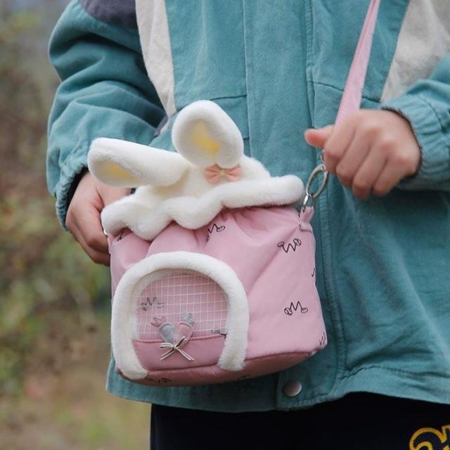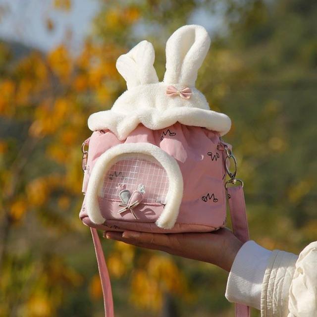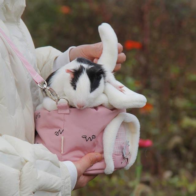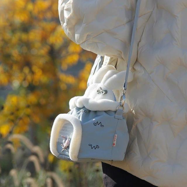 小動物 キャリーバッグ ペットキャリー ハムスター リス うさぎ ハリネズミ キャリーポーチ 布製 ショルダーバッグ 折り畳み コンパクト収納 メッシ