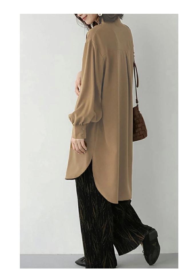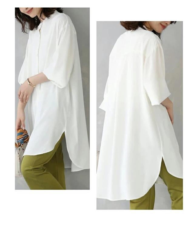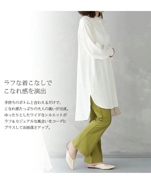 流行や年代にとらわれない、ナチュラルでベーシックな白無地ロングシャツなので、