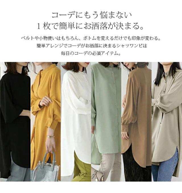 シャツ ワンピース 長袖 レディース シャツワンピース ロング チュニック トップス ロング カーディガン 体型カバー ステンカラー マキシワンピ フレアワンピース カシュクール 膝丈 ゆったり 大きいサイズ 部屋着 シャリ感 通勤 オフィス きれいめ 秋