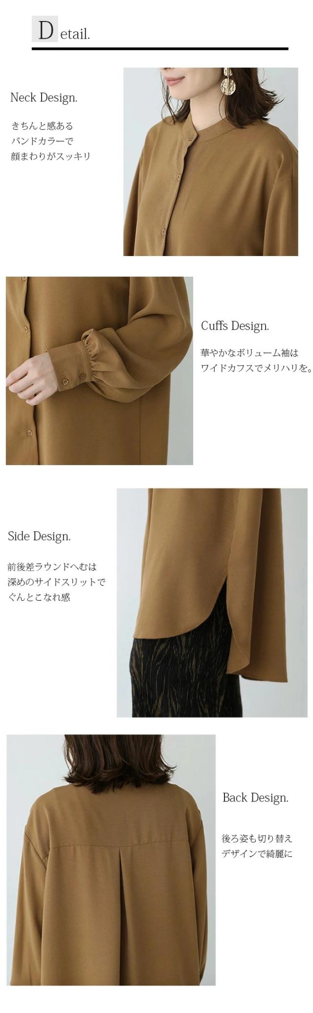 カジュアル以上・コンサバ未満な、オシャレな大人の上質シャツワンピースに仕上げています。 落ち感のある素材に一癖あるディテールをミックスする。