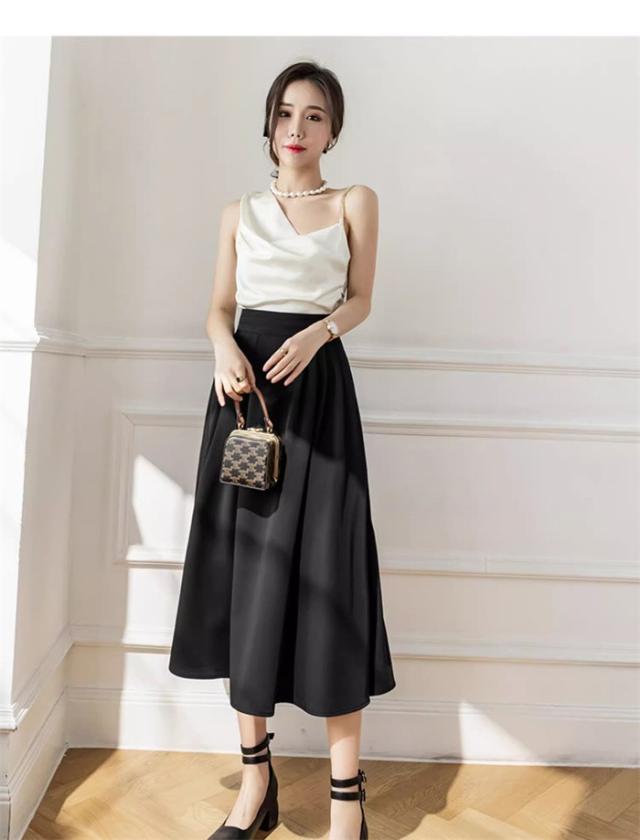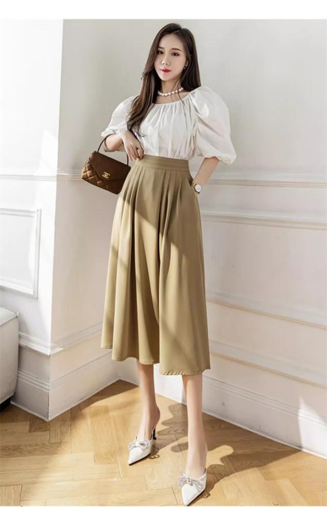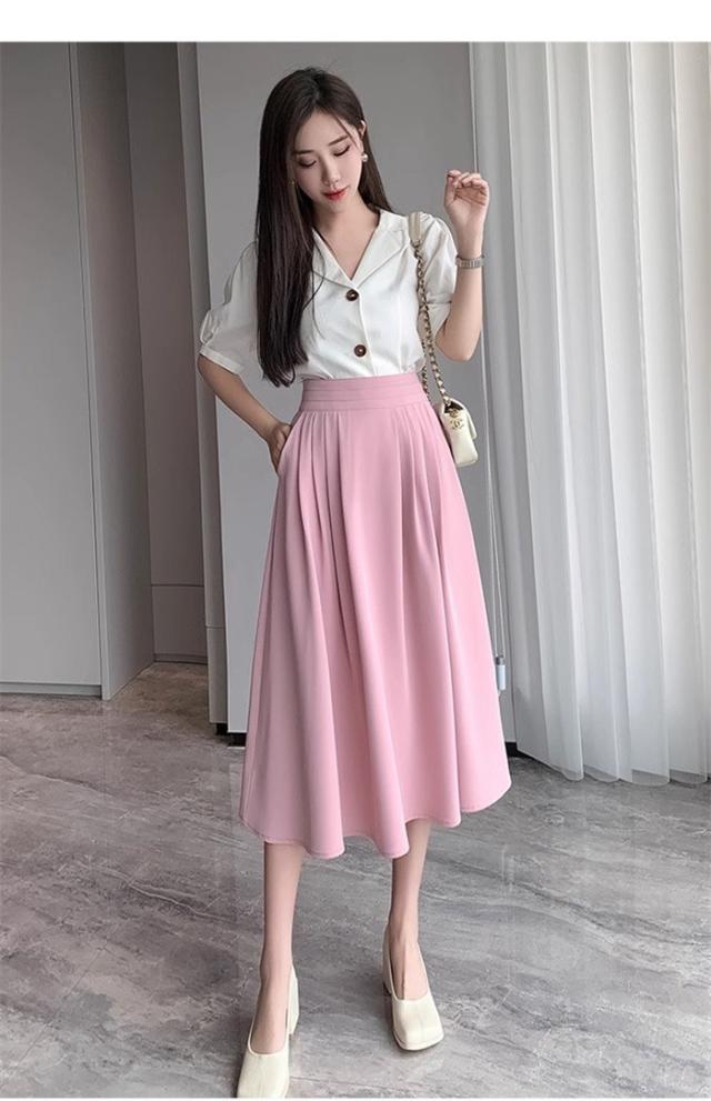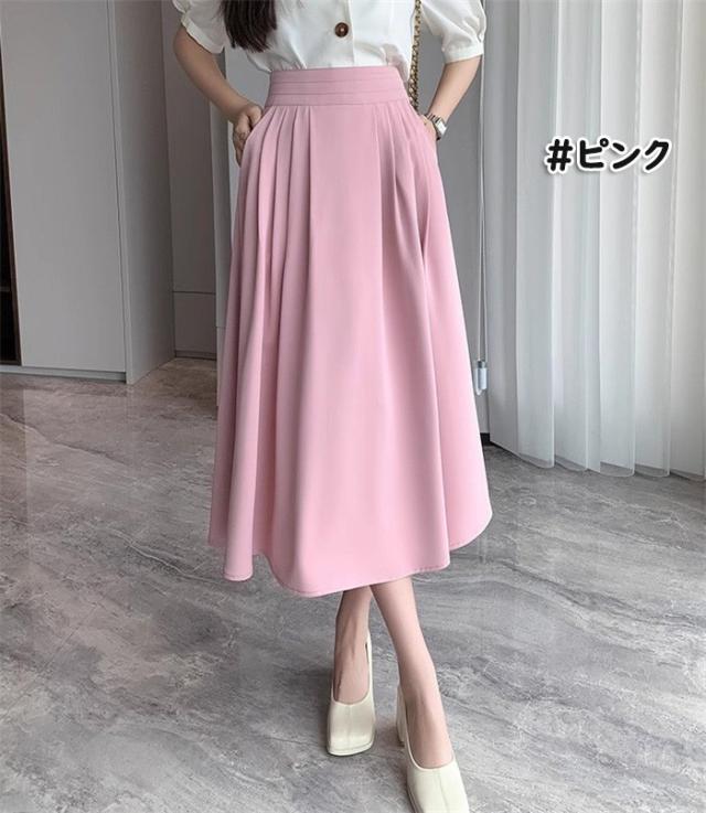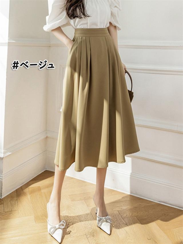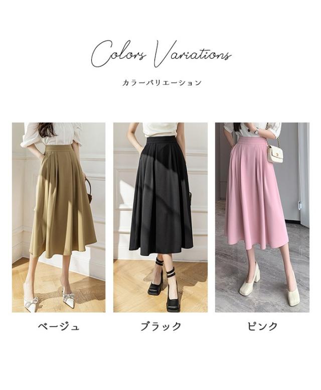 スカート レディース フレアスカート ミモレ丈 黒 ブラック ベージュ ピンク ハイウエスト フレア 春 夏 きれいめ 上品 女性 大人 カジュアル フォーマル おしゃれ 可愛い シンプル 無地 ゆったり 体型カバー 通勤 OL オフィス ビジネス dy045x1x1m5