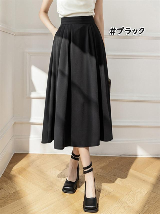スカート レディース フレアスカート ミモレ丈 黒 ブラック ベージュ ピンク ハイウエスト フレア 春 夏 きれいめ 上品 女性 大人 カジュアル フォーマル おしゃれ 可愛い シンプル 無地 ゆったり 体型カバー 通勤 OL オフィス ビジネス