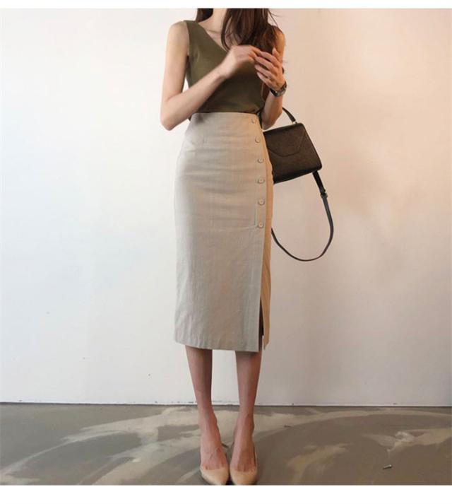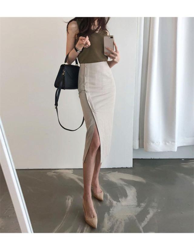 スカート タイトスカート ハイウエスト レディース ミモレ丈 ベージュ スリット 女性 大人 カジュアル 春 夏 きれいめ オシャレ 可愛い シンプル 無地 通勤 OL オフィス ビジネス dy036x1x1m5