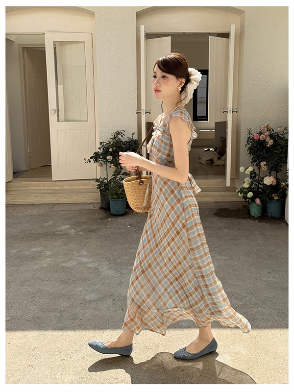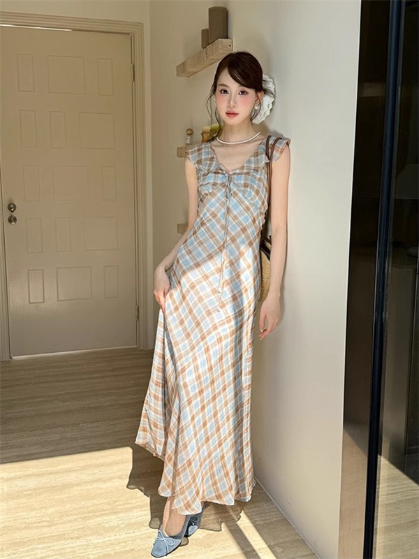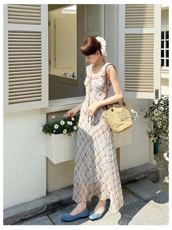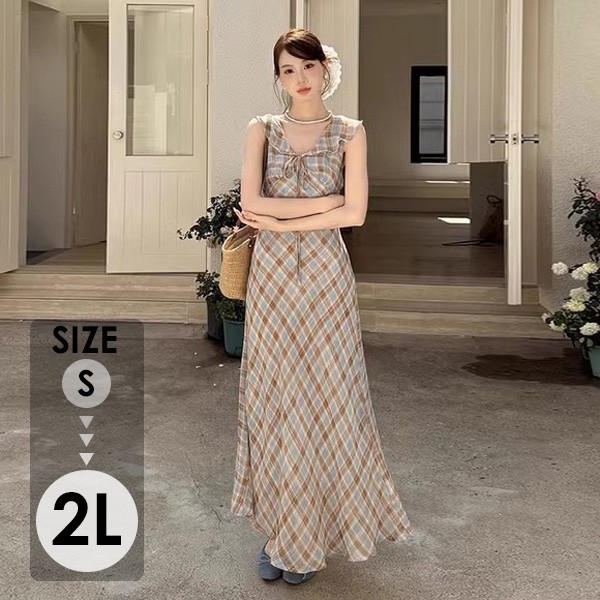 リゾートワンピース レディース サマードレス ワンピース 夏ワンピ ロング おしゃれ チェック柄 ファッション 春夏 カジュアル 体型カバー ゆったり 大きめ きれいめ ハワイ 沖縄 旅行用 大人 20代 30代 40代 可愛い dd096c6c6m5