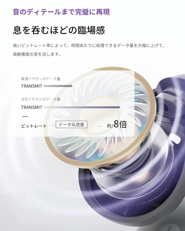最先端の無線通信技術と最新のスマートチップBluetoothバージョン5.4を採用し、屋外の電波干渉環境に耐え、音声の途切れや遅延などの問題を改善し、安定したBluetooth接続を実現します!旧世代のチップと比較して、省電力と接続の安定性が大幅に向上しました。動画視聴時の映像と音声の遅延が従来モデルと比べて大幅に軽減され、スムーズなゲームや動画視聴が可能です。