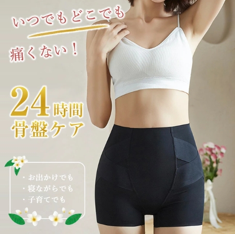 【動きやすいのにしっかり補正】 上下のストレッチバンドが骨盤を支えて包み込むから優しく骨盤補正します。 締め付けが苦手な産後ママの骨盤 ゆがみがケアできる快適なレディース下着です。