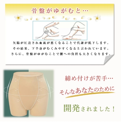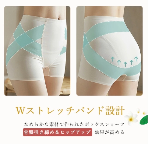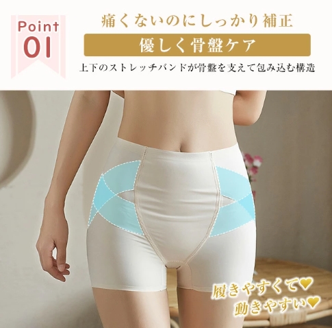 【いつでもどこでも痛くない骨盤ケア】 Wストレッチバンド設計のなめらか引き締めガードルショーツ。 適度な締め付けと快適な動きやすさに徹底的にこだわり、敏感肌でも安心な履き心地の骨盤パンツです。