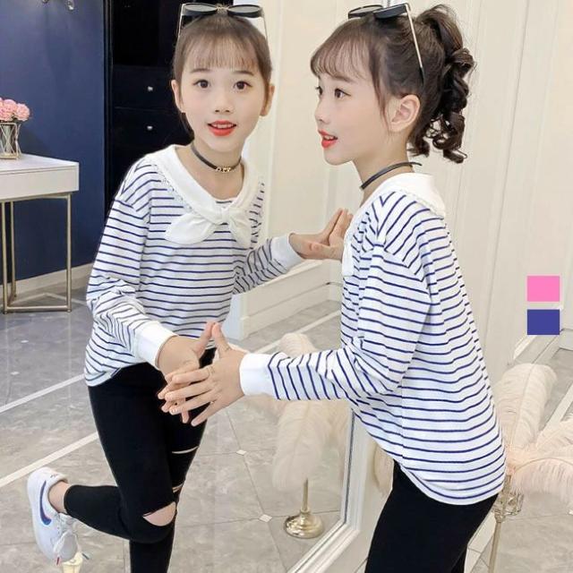 送料無料 春 秋 冬 可愛い 子供服 子供 トレーナー キッズ スウェット 綿100% 女の子 Tシャツ ボーダー ▽ トップス 長袖 ガールズ ジュニア ベビー ジュニア リボン付き お出かけ 入園式 卒業式 発表会 通園 通学 110 120 130 140 150 160 cm 子ども服 こども服