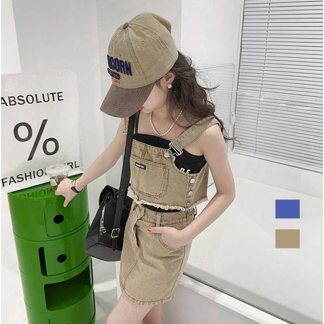 夏 夏服 スカート ボトムス 可愛い 子供服 サスペンダー 女の子 スカート 子ども服 こども服 スカート ショートスカート デニム カジュアル 上下セット キッズ ジュニア セットアップ ガールズ 120cm 130cm 140cm 150cm 160cm 170cm 普段着 ダンス衣装 七五三