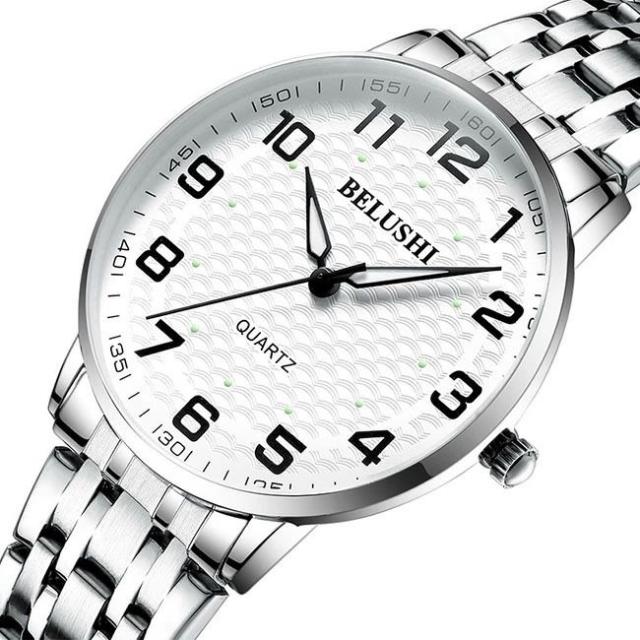 商品情報材質ケース:ステンレス風防:ミネラルガラスベルト: ステンレス防水性能 30M防水サイズ直径: 40mm厚み: 12mm重量:80g保証期間2年間