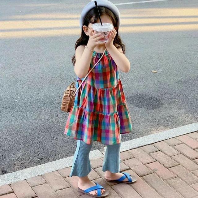 ファッション 【送料無料】サンワンピース キッズ ワンピ 可愛い 子供服 サスペンダー ワンピース 【 ベビー キッズ ジュニア ガールズ 学生 女の子 ジーンズ パンツ 】チェック 半袖 ダンス 韓国子供服 夏 夏服 夏物 ワンピース 80 90 100 110 120 130 140 cm