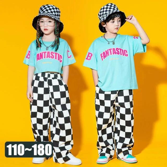 ヒップホップ セットアップ 夏 夏服 女の子 男の子 Tシャツ パンツ チェック 2点セット カジュアル パンツセット 大人 ストリート ジャージ ジャズ ダンス衣装 パンツ キッズ 子供セット スポーツ 子供 110 ~ 180cm チアガール 学生 可愛い 子供服 普段着