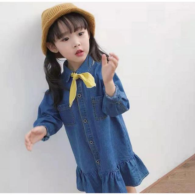 可愛い 子供服 キッズワンピース デニムワンピース ベビー 女の子 子供ワンピース ウエストベスト 襟付き フレアワンピース 長袖ワンピース