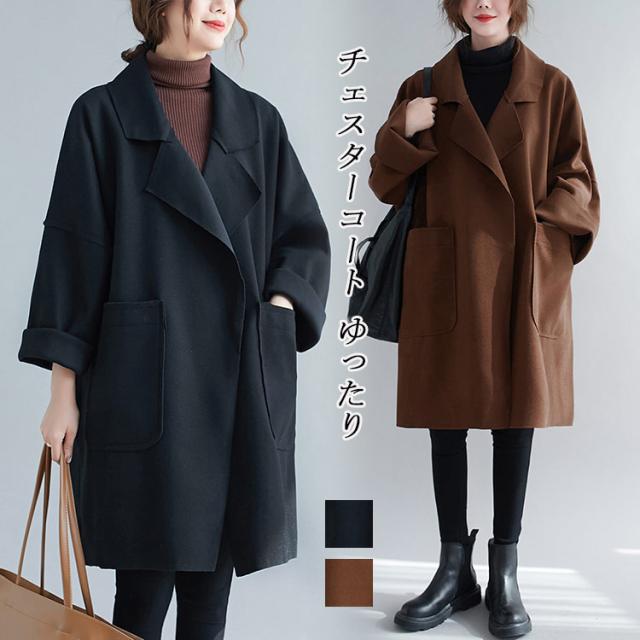 チェスターコート コート レディース 長袖 襟付き ロングコート 秋冬 厚手 膝丈 ポケット付き トレンチコート 前開き 羽織り アウター フレア 無地 トップス ゆったり 体型カバー チェスター ロング丈 カジュアル ラシャ 暖かい 冬服 おしゃれ オフィス 通勤 大人