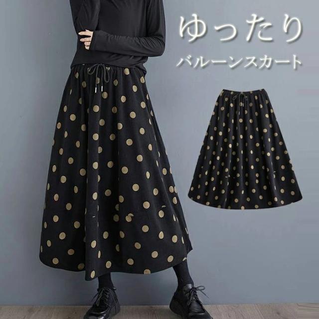 スカート ロング 厚手 秋冬 レディース 黒 大きいサイズ コーデュロイ 冬 フレアスカート ドット 水玉 フレア バルーンスカート ボトムス 秋 秋物 Aライン ミモレ丈 ロングスカート ミモレ丈 シンプル きれいめ 大人 可愛い ウエストゴム カジュアル 大人可愛い