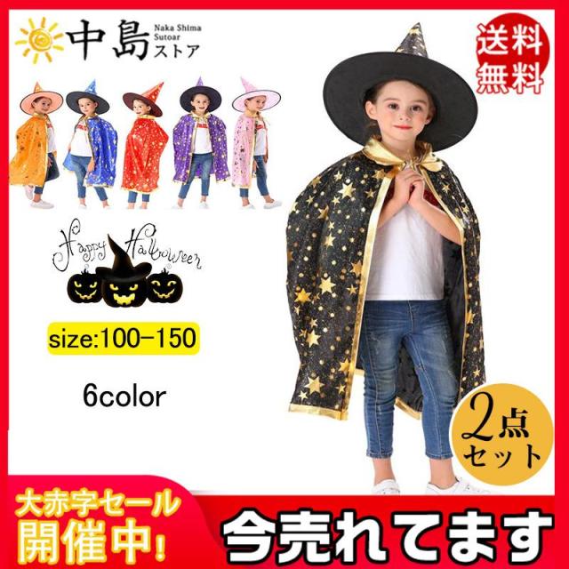 国内発送 ハロウィン マント 子供 仮装 キャップ 2点セット 女の子 男の子 キッズ 魔法使い コスチューム コスプレ 魔女 お化け 衣装 道具