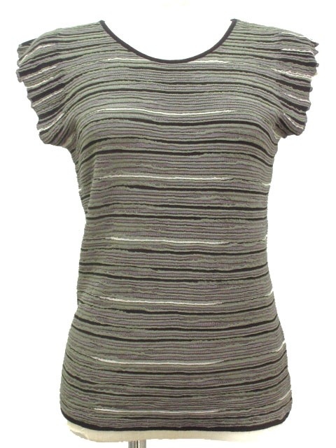 【中古】エンポリオアルマーニ EMPORIO ARMANI ノースリーブ ニット プルオーバー ボーダー グレー カーキ トップス