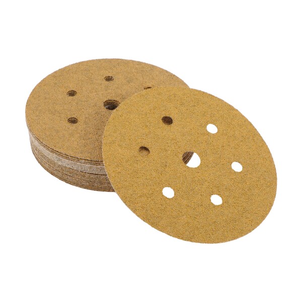 INFINAUTO サンディングディスク 6" 7穴 40番研磨用自動車修理用ラウンドフックアンドループサンドペーパーアルミニウムオキサイド ペーパーベースイエロー 25個