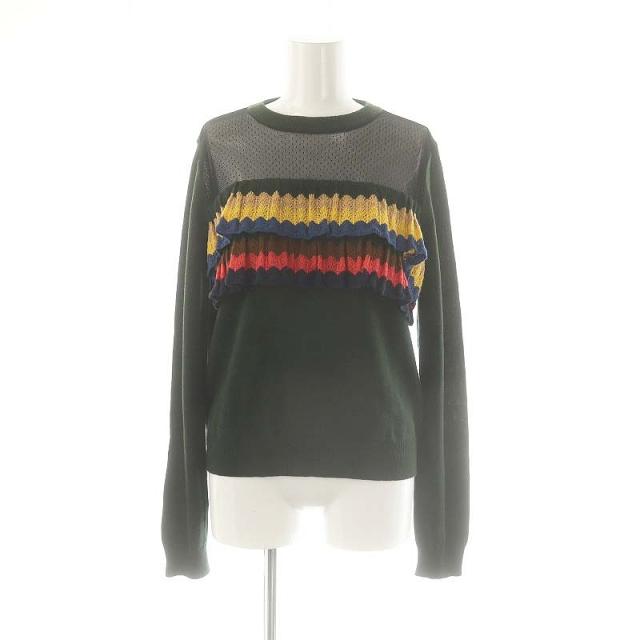 【中古】セブンテンバイミホカワヒト チュール フリルニット セーター F ダークグリーン マルチカラー レディース