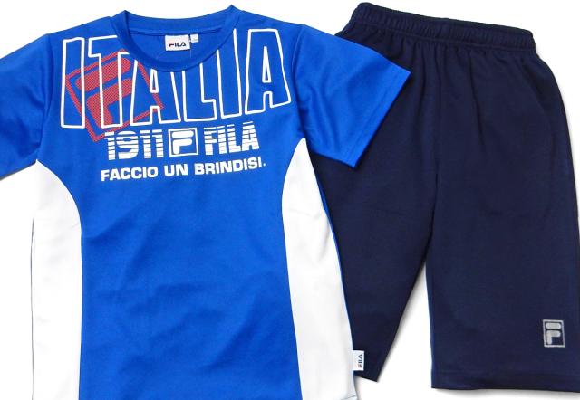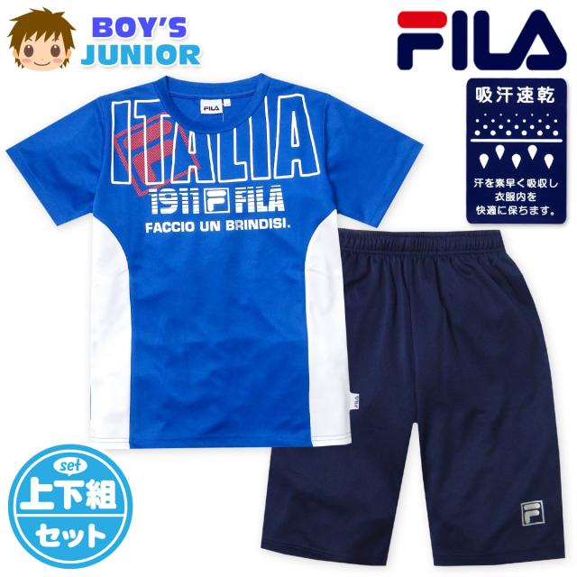【送料無料】男児 ジュニア 吸汗速乾 半袖 Tシャツスーツ 上下組 FILA/フィラ ハーフパンツ ジャージ 通気性 配色 箔ロゴ 子供服 男の子 140cm 150cm 160cm iw-1304b-bl【メール便対応】