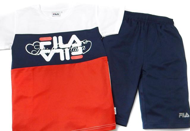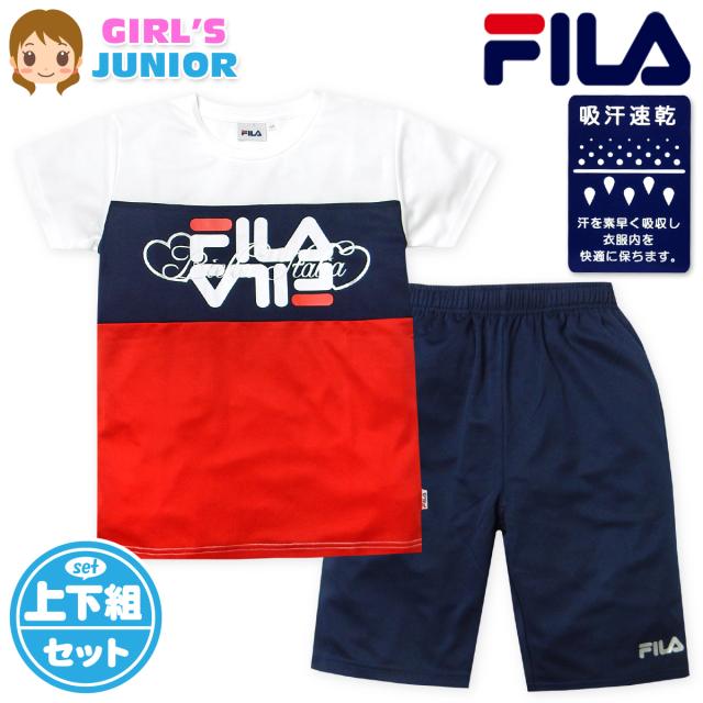 【送料無料】女児 ジュニア 吸汗速乾 半袖 Tシャツスーツ 上下組 FILA/フィラ ハーフパンツ ジャージ 通気性 配色 箔ロゴ 子供服 女の子 140cm 150cm 160cm iw-1305a-rd【メール便対応】