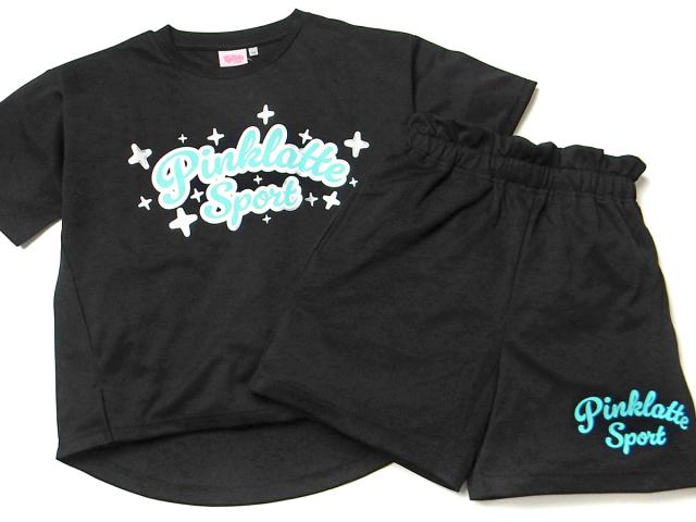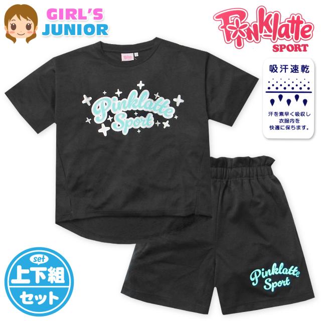 【送料無料】女児 ジュニア 吸汗速乾 半袖 Tシャツスーツ 上下組 PINK-latte/ピンクラテ ハーフパンツ ジャージ ドライピケ 子供服 女の子 140cm 150cm 160cm iw-1306b-bk【メール便対応】