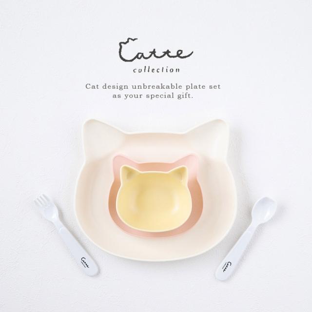 食器セット 猫 BPAフリー 赤ちゃん キッズ 子供 ベビー 食器 セット ギフト プレゼント 出産祝い 食洗機対応 レンジok 割れない 抗菌加工 日本製 かわいい catte キャッテ ギフトボックス 45 アイボリー