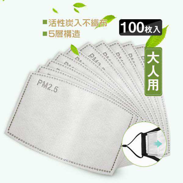 マスク用取り替えシート 5層構造 100枚入 大人用 花粉対策マスク 活性炭入不織布 フィルターシート 交換マスクフィルター PM2.5 送料無料