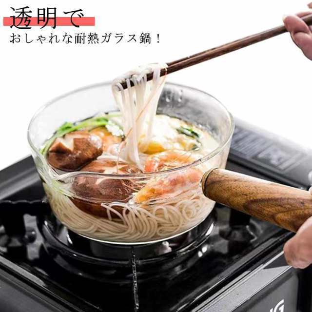 オーブン ガラス鍋 ミルクパン 北欧風 卓上鍋 片手鍋 ミニパン 透明 ガラス製 クリア ソースパン 耐熱ガラス ミニ鍋 レンジ対応 直火 木