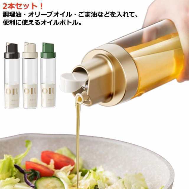 | 2本セット!調理油 -オリーブオイル -ごま油などを入れて、便利に使えるオイルボトル。 片手で本体を傾けるだけで蓋が自動開閉します。自動開閉のため、中身をそそぐ時以外は常時フタが閉じた状態。 本体ボディは透明なガラス製で中身や残量がよく見えるようになっています。 間口の広いタイプで、オイルを移し替える際にわざわざ道具を準備する必要がなく、さらにはボトルを汚すことなく詰め替えができます。 本体、キャップ、注ぎ口は3分割に外すことができ、丸洗い可能でお手入れが簡単なのも魅力です。 スリムな作りになっているので、たっぷり500ml入れても片手で手軽に使えます。 オイルだけでなく、酒やみりんなどほかの調味料も揃えると一体感も増します。 キッチンにも、テーブルにも、様々なシーンにマッチするデザインです。 | |