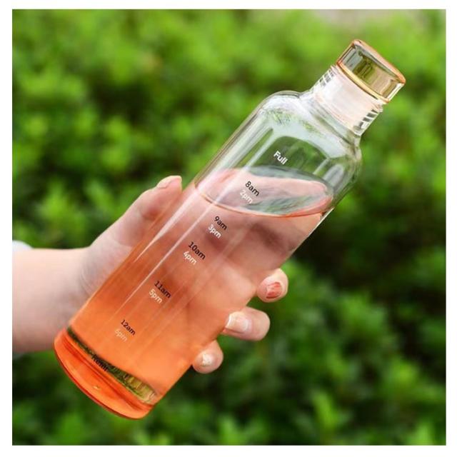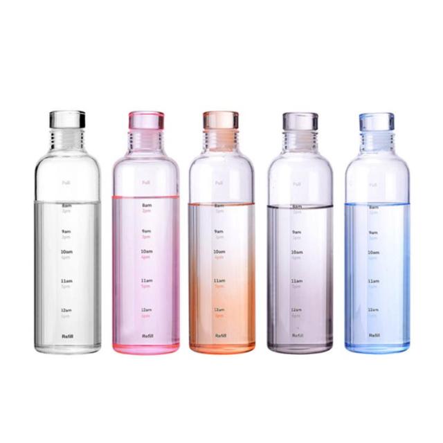 かわいい ガラス 漏れ防止栓 マイボトル 直飲み ウォーターボトル 500ml おしゃれ 水筒 目盛り付き ボトル ボトル ワークアウト ウォーターボトル 通学 通勤 耐冷耐熱 クリアボトル