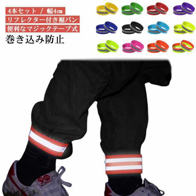 4本入 反射バンド アームバンド ズボン裾止めバンド 幅4cm ズボンクリップ 裾止めバンド 足首バンド ゴム 自転車 マジックテープ 裾バン
