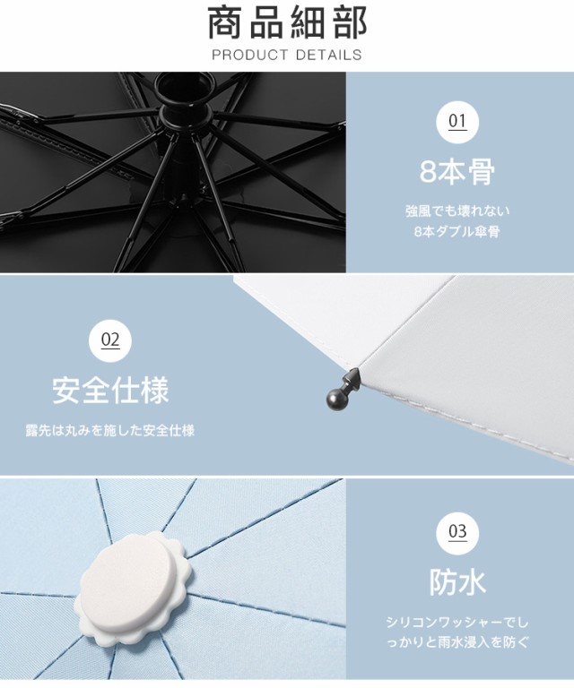 日傘 自動開閉 折りたたみ傘 晴雨兼用 傘 8本骨 UVカット 折りたたみ日傘 完全遮光 UPF50+ ひんやり傘 超撥水 おしゃれ 軽量可愛い 雨傘