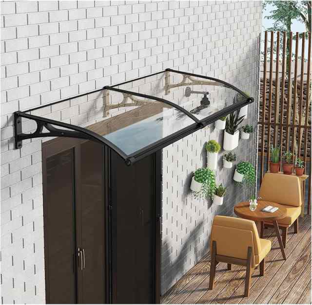 住宅用ひさし サンシェード オーニング屋根ひ PCポリカーボネート オーニング 雨雪保護 パティオ日除け 梅雨対策 庇 後付け シェルタートランスペアレント 屋根カバー アルミ合金ブラケット 玄関 住宅用 カーポート ひさし 雨よけ 後付け テラス